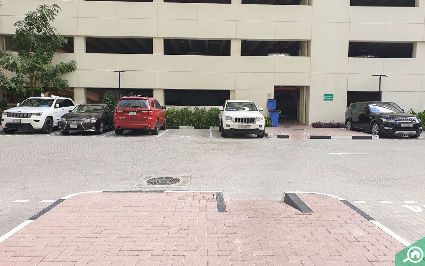 يتوافر في البرج السكني 3 طوابق أرضية مخصصة لموقف سيارات السكان والزوار.