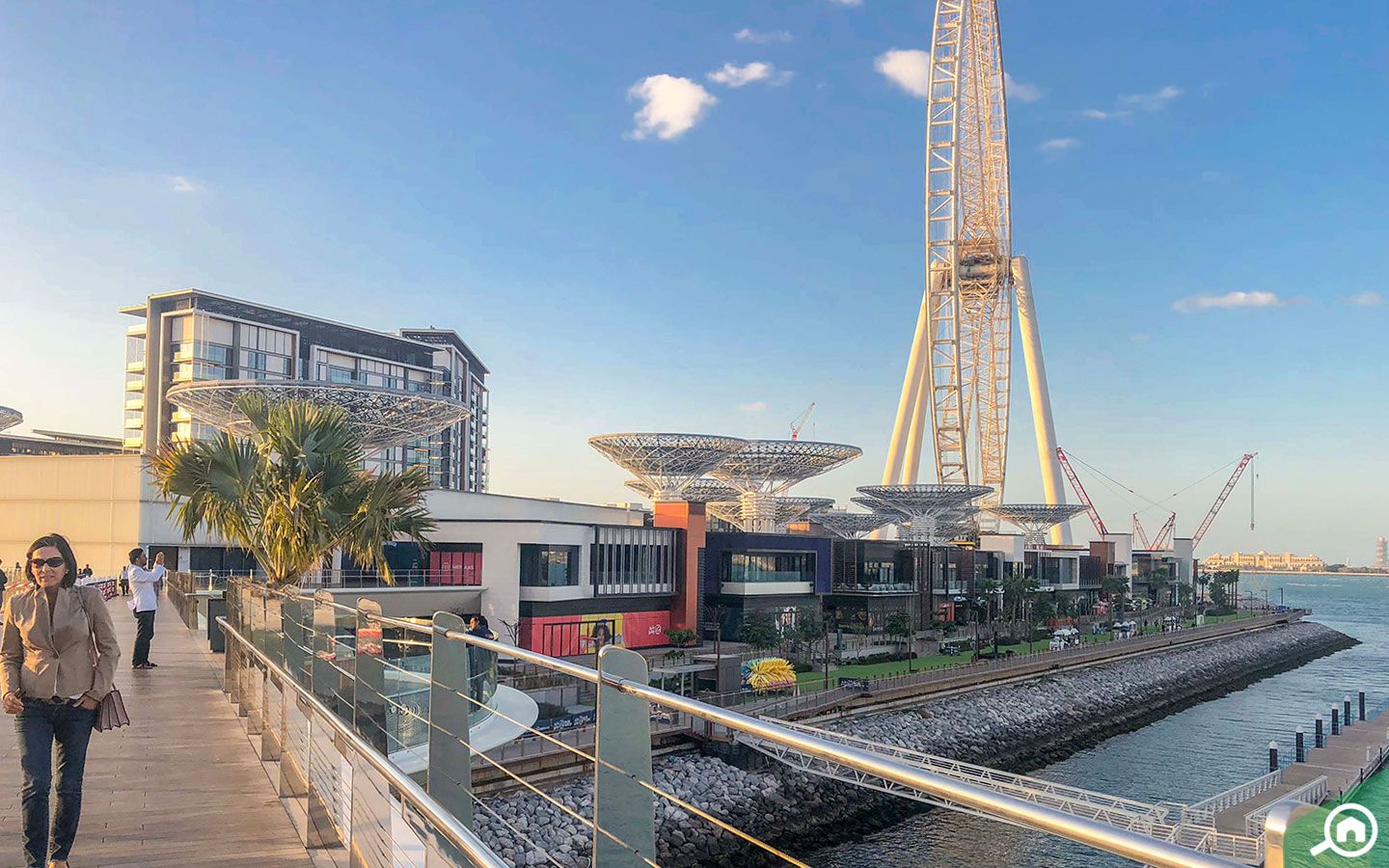 يستغرق الوصول إلى جزيرة بلووترز دبي مسافة 20 دقيقة بالسيارة، وهي جزيرة متعددة الأغراض تضم الكثير من الوحدات السكنية والمرافق الترفيهية، مثل واجهة عين دبي البحرية التي تضم أكبر عجلة دوارة في العالم، إلى جانب قلعة قيصر الجديد والعديد من المطاعم والمحلات التجارية وشاطئ الكوف.