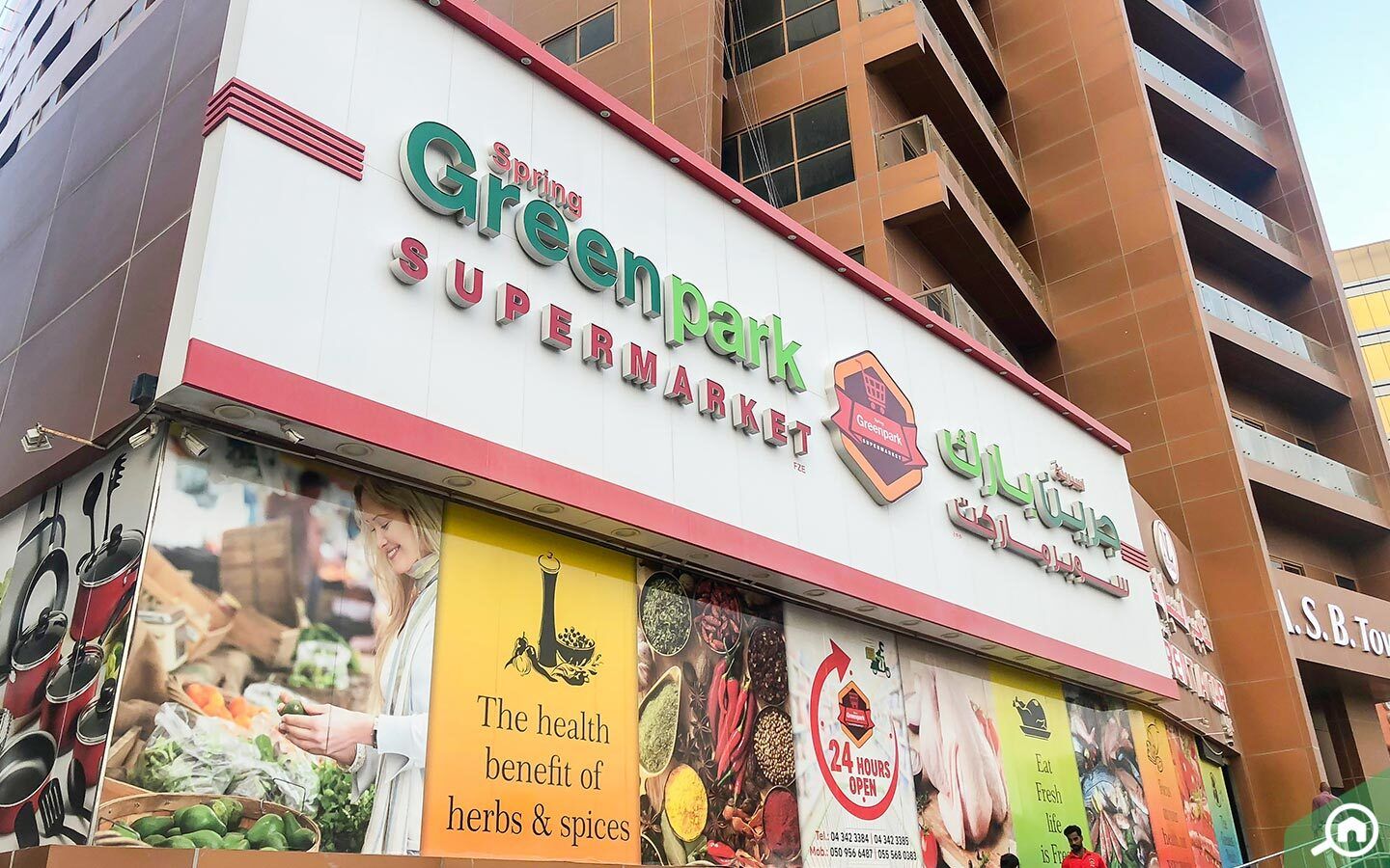 تحيط جميع هذه المتاجر بالمبنى 1، حيث يقع سوبر ماركت كارفور في برج نوفا وسوبر ماركت اسبرينغ جرين بارك في برج إي إس بي، في حين يستغرق الوصول إلى سوبر ماركت العديل 3 دقائق سيراً على الأقدام. هذا وتقدم بعض أفضل متاجر ومحلات السوبرماركت في دبي خدمات التوصيل المنزلي، مثل كارفور وشويترام.