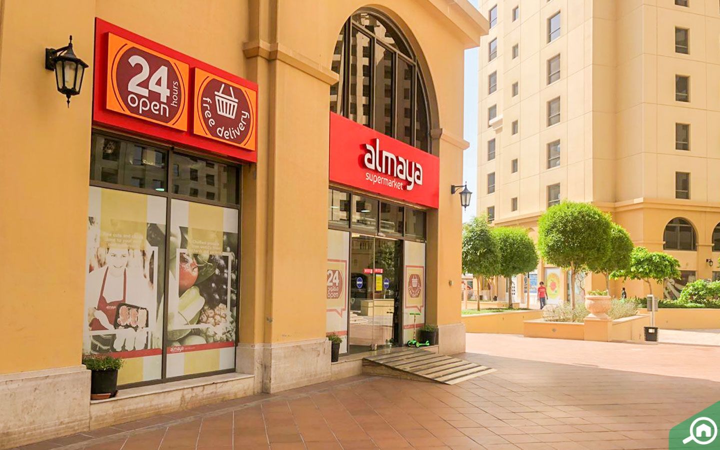 تتوفر العديد من محلات السوبر ماركت القريبة من المبنى ومنها: