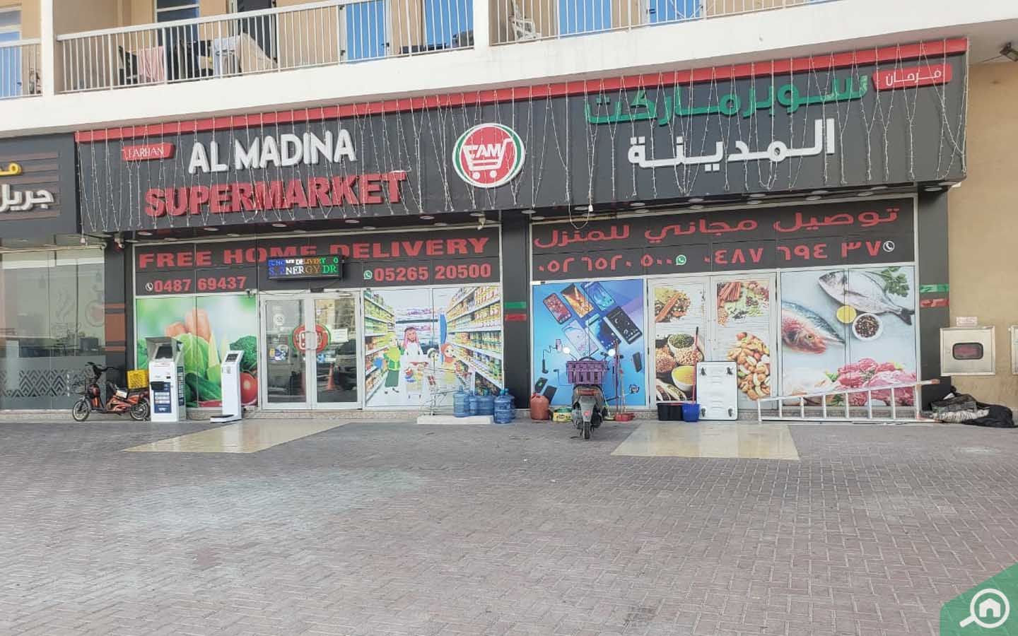 يمكن للسكان تسوق الحاجات الضرورية من سوبر ماركت المدينة في الطابق الأرضي من المبنى، أو السير لمدة 10 دقائق إلى محلات السوبر ماركت القريبة، مثل: