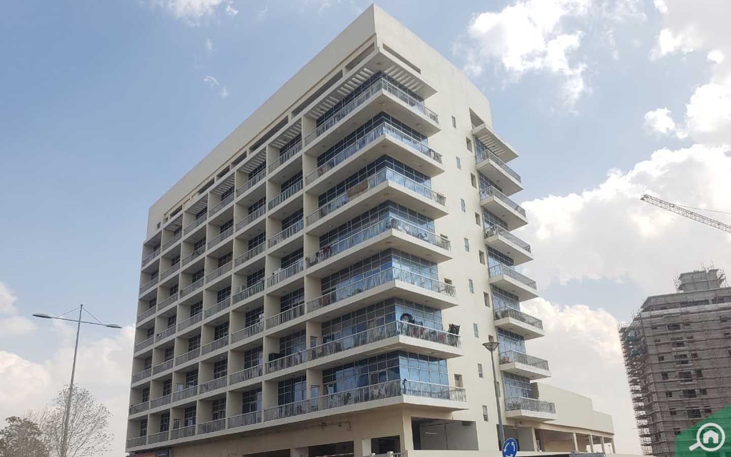 يضم المبنى شقق غرفة وصالة و شقق غرفتين وصالة، بالإضافة إلى العديد من المتاجر في الطابق الأرضي. يمكنك أيضاً الاطلاع على شقق للايجار في المدينة العالمية.