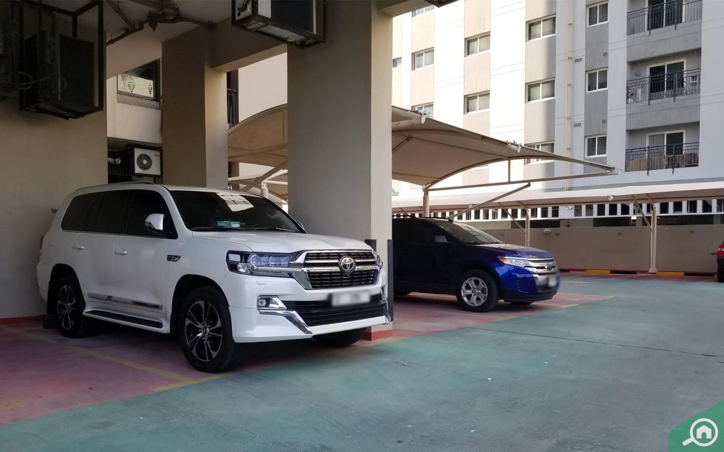 يوفر المبنى مواقف سيارات آمنة ومظللة للسكان، حيث يتوفر موقف واحد على الأقل لكل شقة.