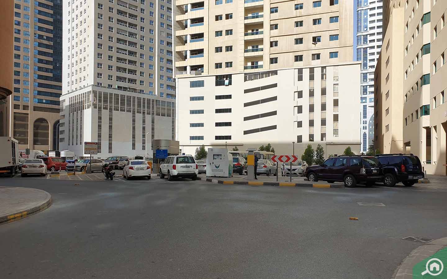 تتوزع مواقف السيارات المخصصة للسكان على طابقين، كما يمكن للزوار والمقيمين الاستفادة من مواقف السيارات المجانية، وكذلك مواقف السيارات المتاحة بالأجرة المتواجدة بالقرب من البرج السكني.