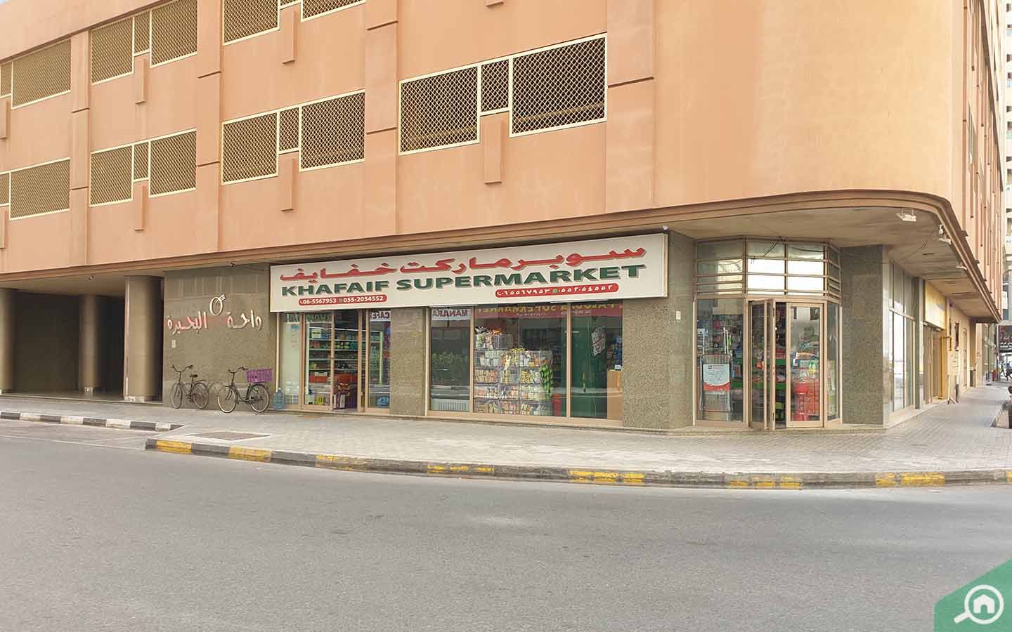 لن يضطر المقيمون في البرج السكني الى مغادرته لشراء حاجياتهم اليومية، حيث يوفر سوبر ماركت خفايف الواقع في الطابق الأرضي جميع مستلزمات البقالة الضرورية، في حين تشمل أبرز محلات السوبر مارك القريبة كل من: