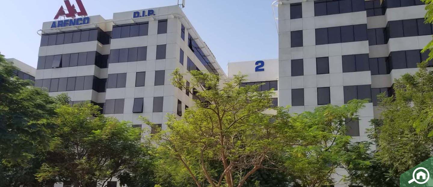 All these commercial buildings are part of the Arenco Building complex. They are among popular choices if looking to rent offices in Dubai Investment Park.