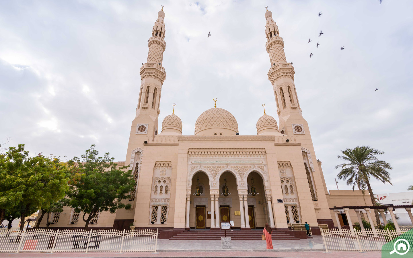 Jumeirah Mosque is one of Dubai’s iconic landmarks. It is built from white stone with twin slender minarets and a central dome. Located at an 18-minute drive, it can accommodate over 1,200 people.