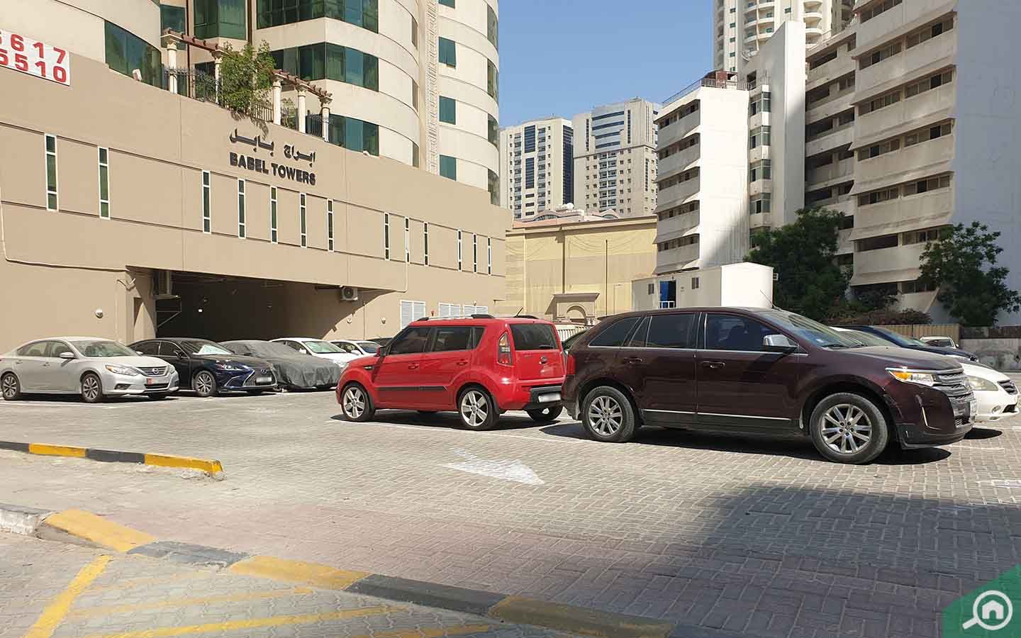 There are four levels of covered parking in Babel Tower, Sharjah. Residents and visitors can also make use of the open spaces and paid parking lots outside the tower.