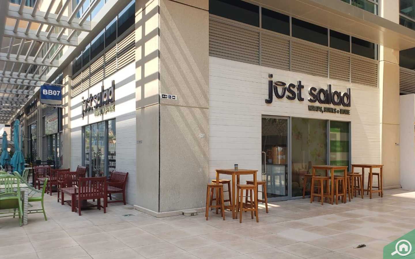 Soy to Chutney serves Indian and Chinese cuisine also including biryani. Just Salad is located on the ground floor of Bay Square Building 7. You can stop by for a quick bite here, they offer mainly healthy options and different types of salads