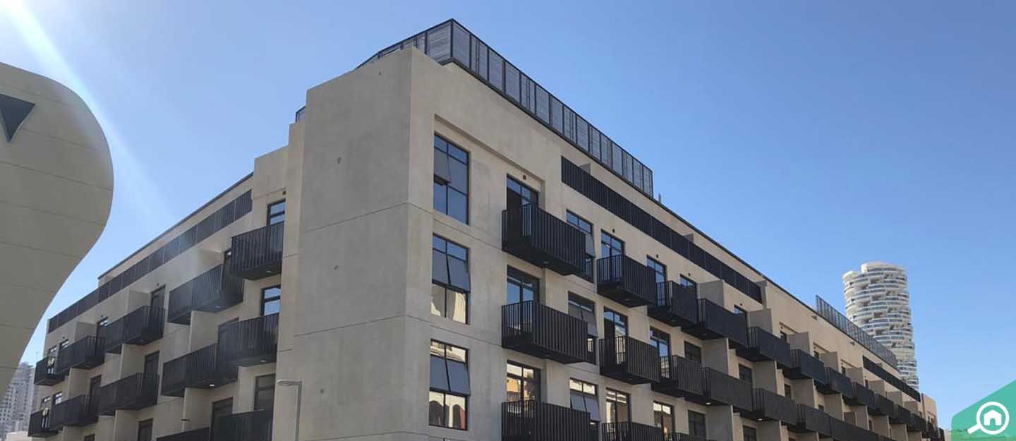 Studios in Beverly Residence Dubai cover an area of 400 sq. ft. to 460 sq. ft. They have kitchen with fitted appliance, one bathroom, pre-fitted wardrobes and a balcony.