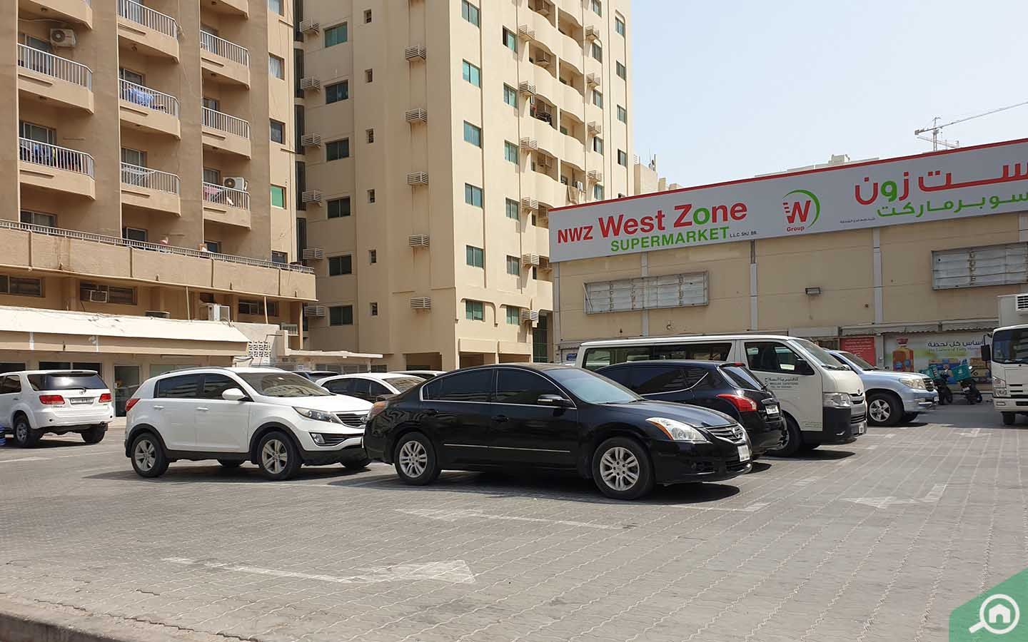 Burl Al Awael, Al Majaz has a grocery store on the ground floor of the building. There is also a hair salon and a document copying shop. The ground floor has a laundry store as well.