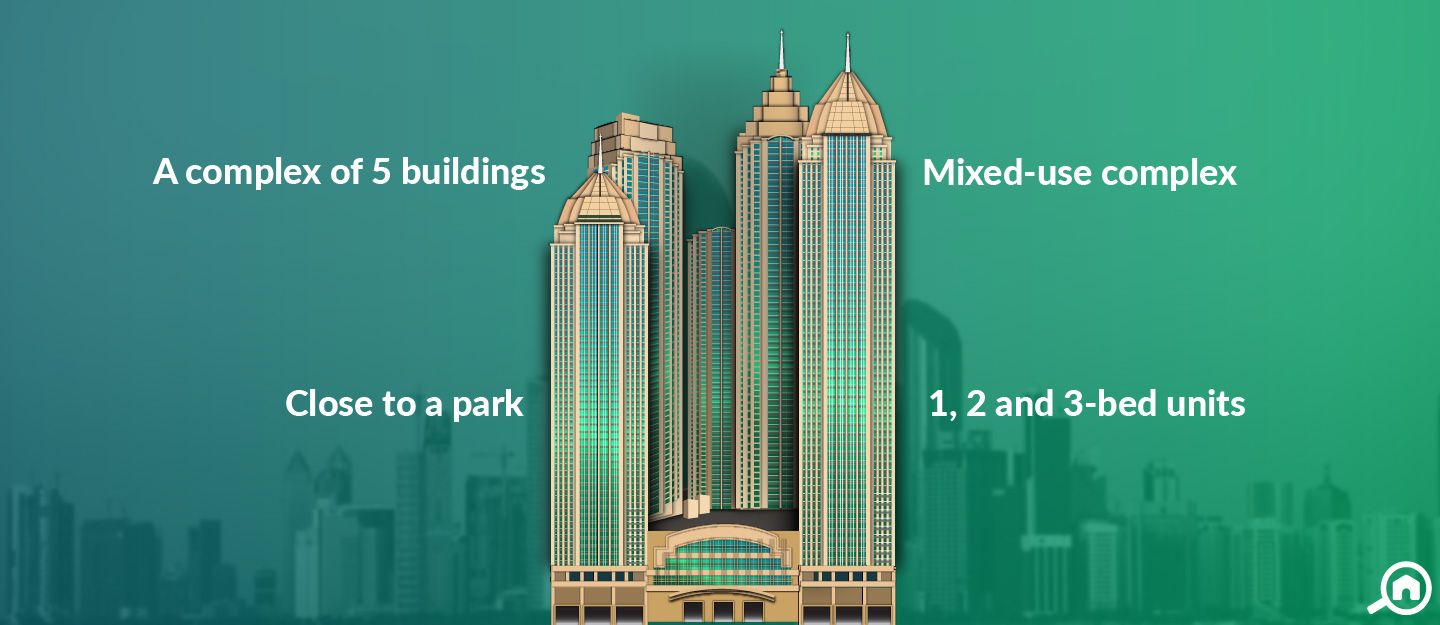 The complex boasts ample of luxury lifestyle amenities. It has two swimming pools for adults and kids, Jacuzzi, a resident lounge with billiard and play station. Also, there is a day care and arts studio for kids. Besides this, seven levels of the podium also have retail shops and dining facilities. It also has cinema and French bakery.