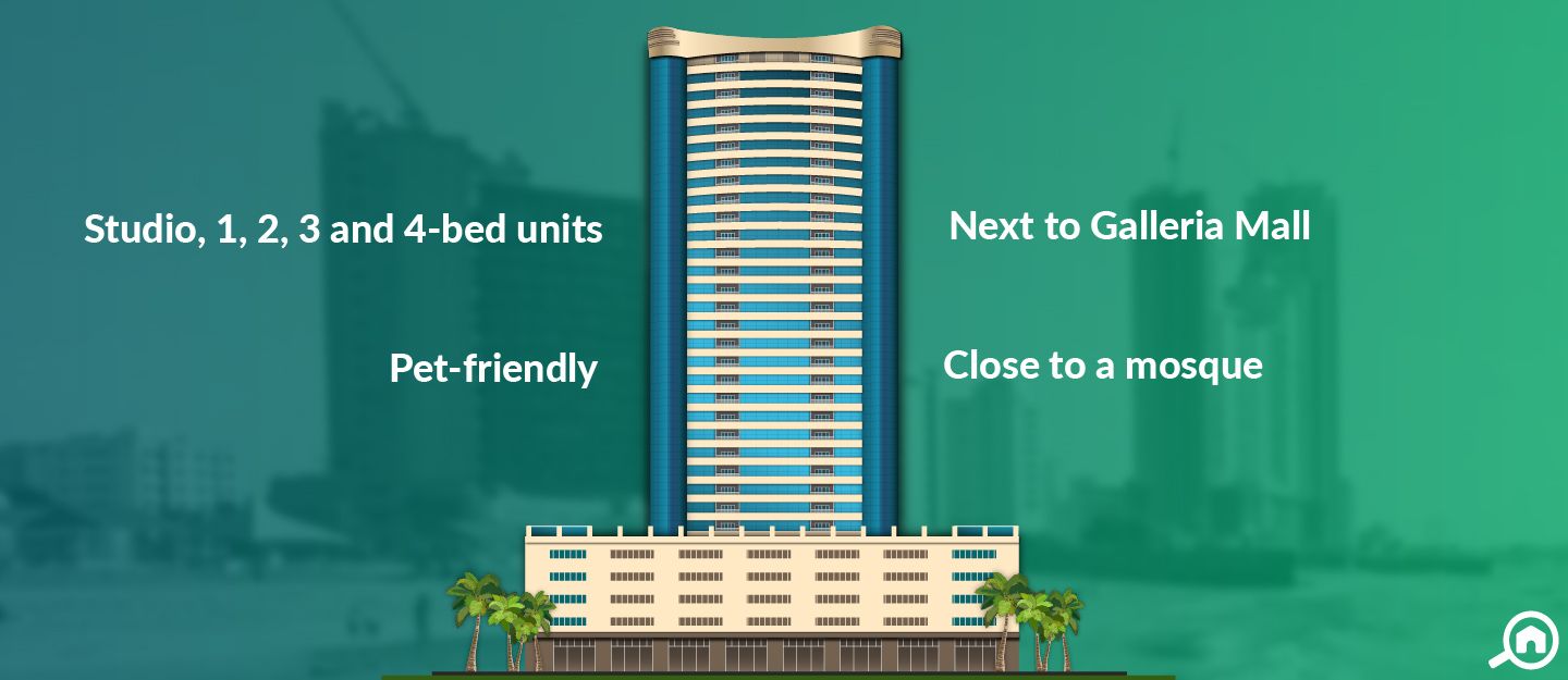 There are vast amenities for residents inside the building including CCTV surveillance, basement parking, gymnasium and a swimming pool. The gymnasium is by Technogym and has high-quality fitness equipment. There are also sauna and steam rooms facility for relaxation. The tower is situated amidst many restaurants with bus stations and supermarkets accessible at a walking distance. Being situated next to Galleria Mall, the tower offers an easy access to retail facilities.