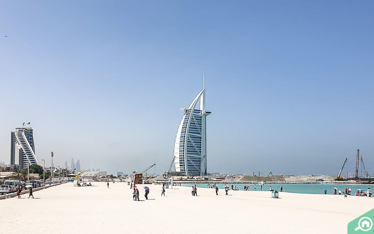 Famous for its pristine white sands and crystal-clear waters, Jumeirah Beach is a must-visit destination for locals and tourists. It’s perfect for sunbathing, swimming and beach sports, while the stunning backdrop of the Burj Al Arab adds more to its charm. It is about a 5-minute drive from the building.