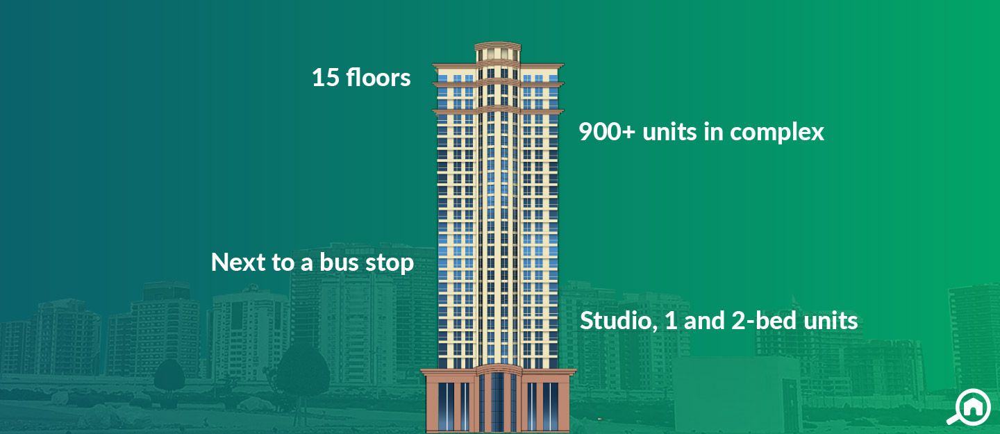 ReadyCrescent Tower C is part of The Crescent Residences, which is a collection of three buildings in Dubai Production City. Built around a circular courtyard, the building is equipped with state-of-the-art amenities. Set amidst manicured lawns and overlooking picturesque vistas, this building features studio, 1 and 2-bedroom apartments.