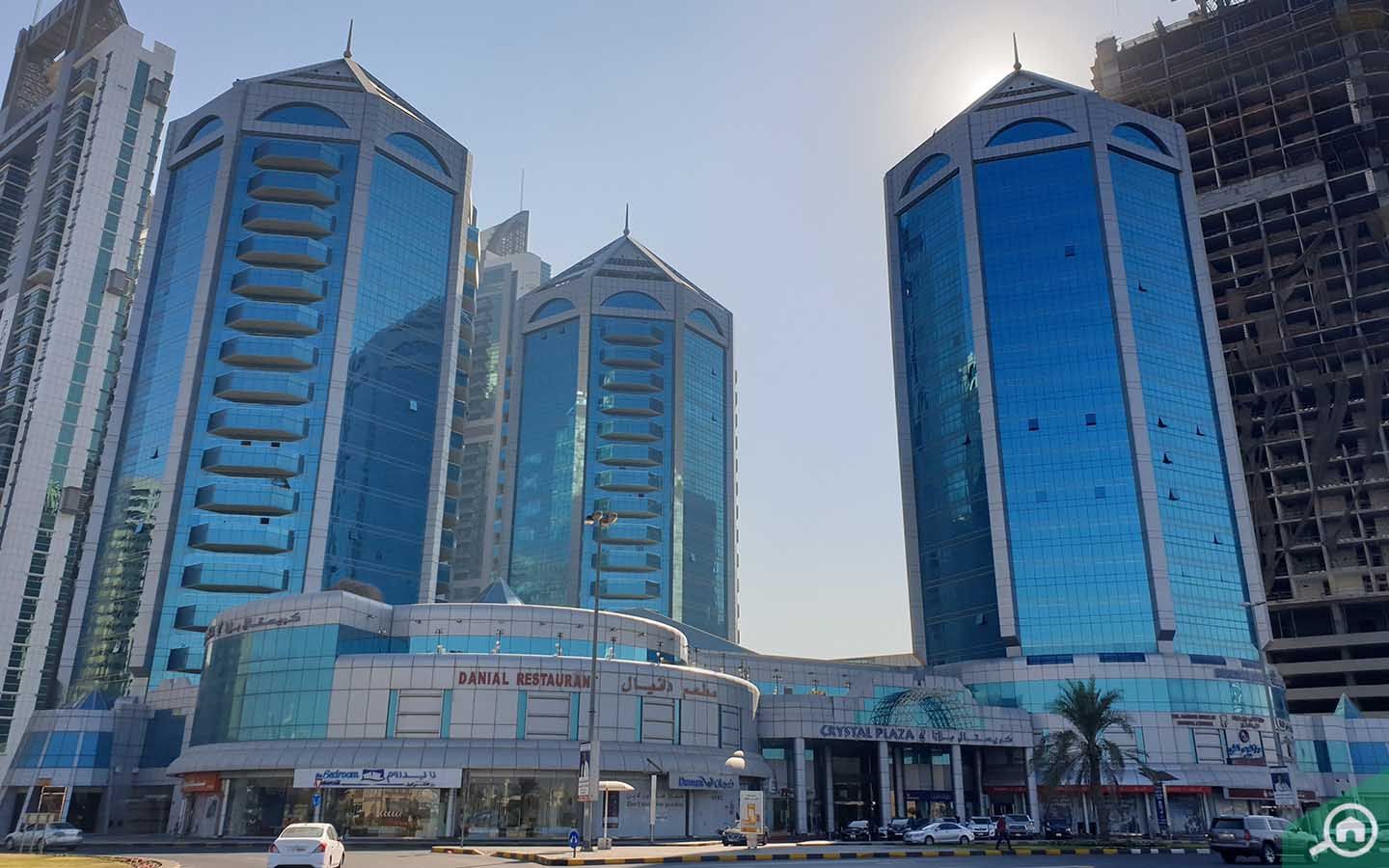Crystal Plaza Al Majaz Hotel has offices, shops and 3-bedroom apartments.
