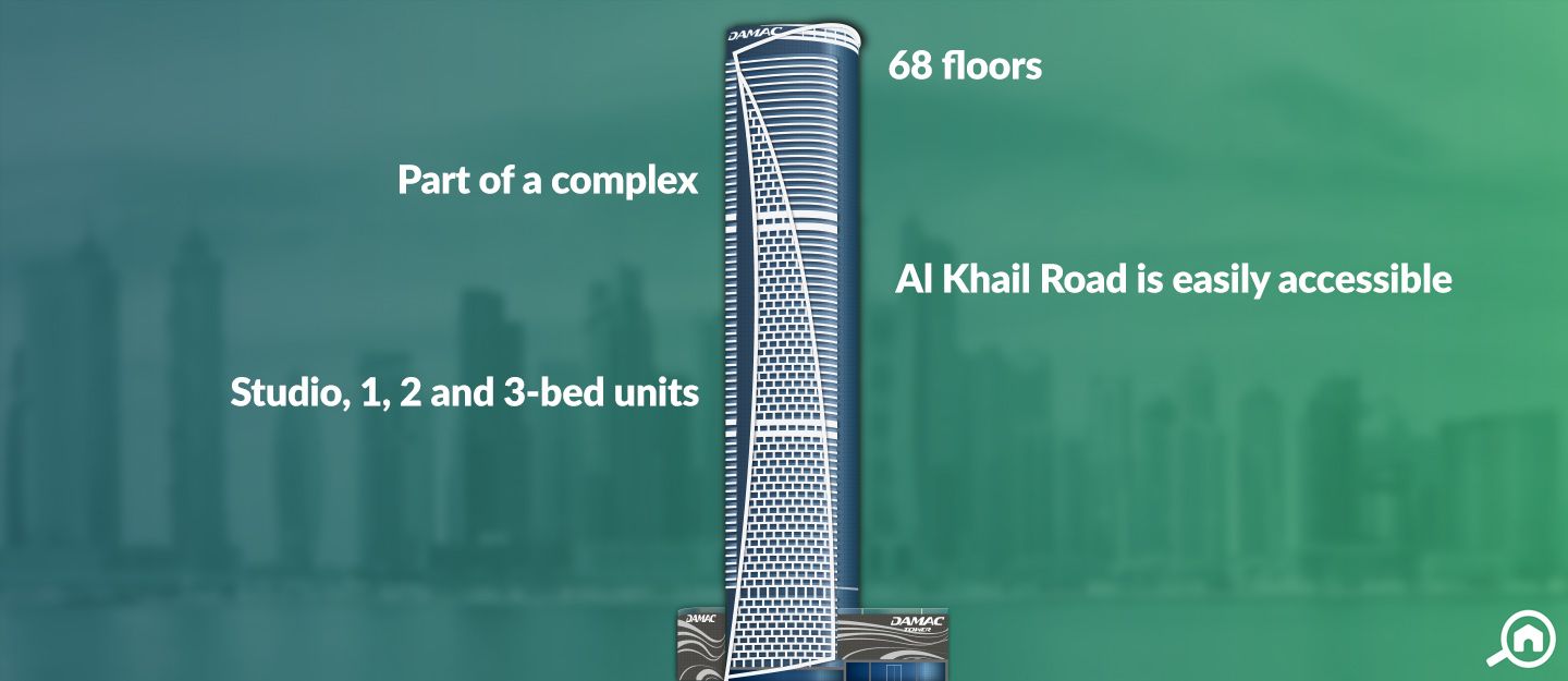 ReadyDAMAC Tower A is a 68-storey residential tower in Business Bay. The skyscraper is a part of an iconic hotel and residential complex: DAMAC Towers by Paramount. The high-rise tower has 58 floors and 10 levels podium above the ground floor. Tower A features 400 units. Apartments in DAMAC Tower A consist of 1, 2 and 3-bedroom units.
