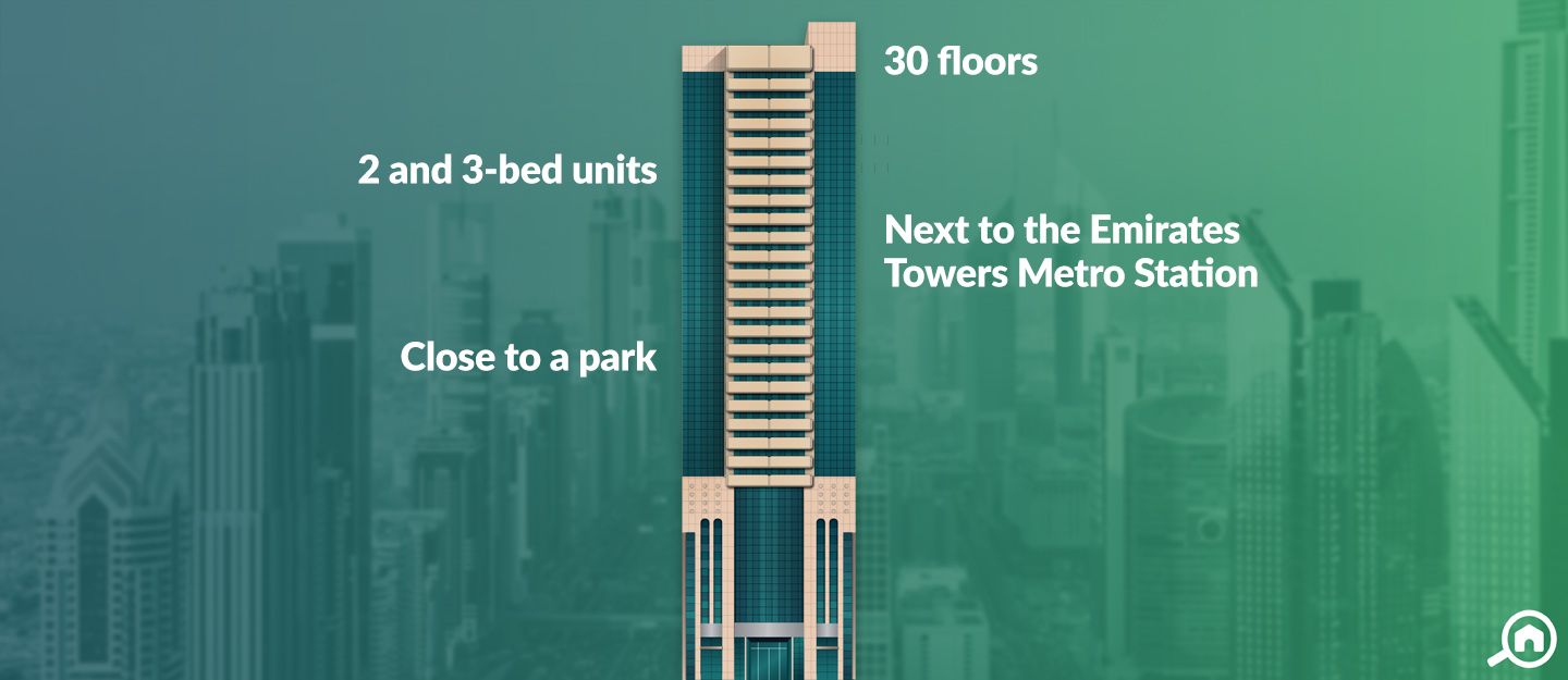 Reachable via a 3 to 10-minute drive, the nearest metro stations include Financial Centre, Emirates Tower, Burj Khalifa/Dubai Mall, World Trade Centre and Business Bay. All these metro stations lie on the Red Line of the Dubai Metro.