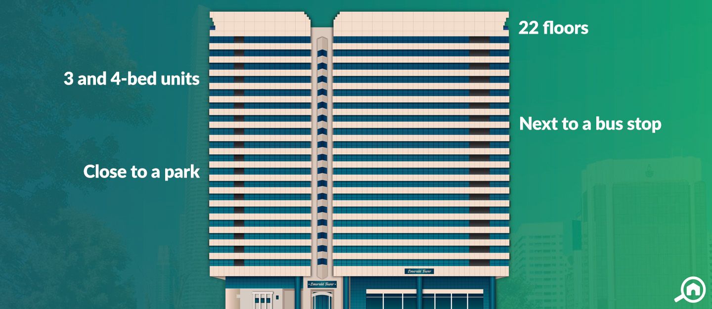 Emerald Tower, Abu Dhabi offers 3 and 4-bedroom apartments.