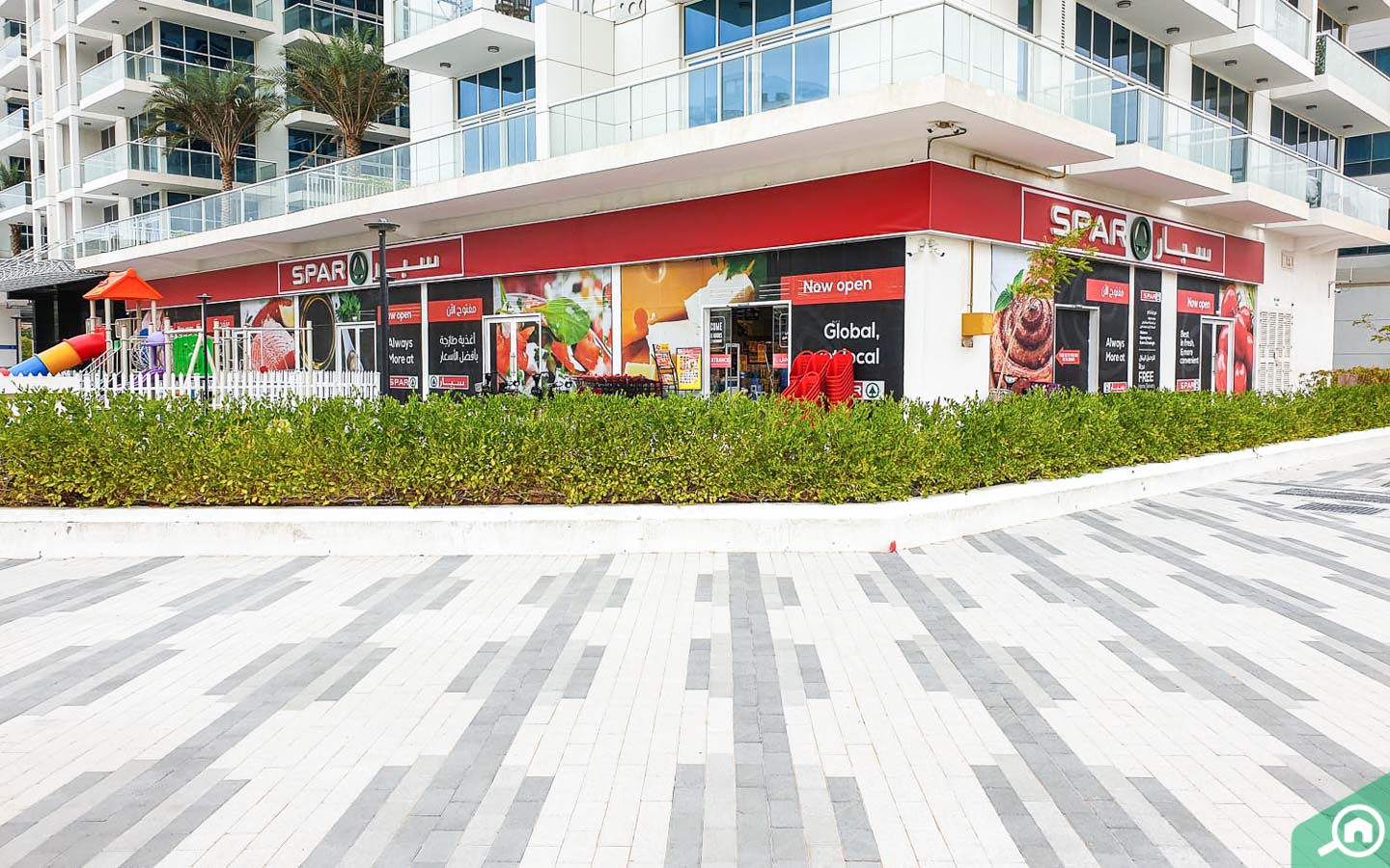 SPAR Express is located on the ground floor of Glitz 2. It is the most convenient option for grocery shopping. Spinneys in Motor City is another option. This supermarket chain is known for imported British goods. You can also find VIVA, one of the cheapest supermarkets in Dubai at a 10-minute drive away.