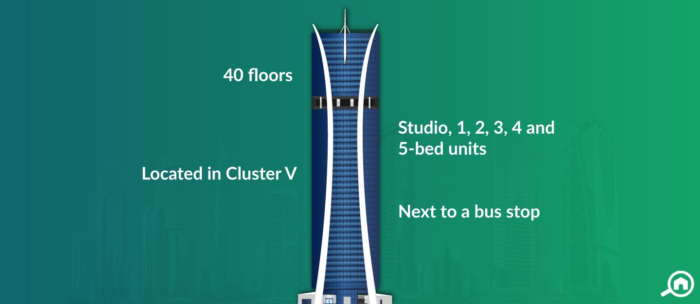 Located in Cluster V, JLT, the residential tower is approximately a 15-minute drive away from Wild Wadi Waterpark.