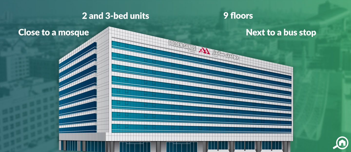 ReadyGolden Sands Al Barsha is a mid-rise residential building in Al Barsha 1. The tower has beautiful architecture with an attractive entrance and corridors. Those looking to rent or buy apartments in Golden Sand Al Barsha will find 2 and 3-bedroom apartments on its nine floors. Residents can use facilities like covered parking and high-speed elevators. The magnificent lobby on the ground floor serves as a waiting room. The retail area on the ground floor offers commercial showrooms and houses a supermarket and a private gym. The tower is also called Arenco Golden Sands Al Barsha.