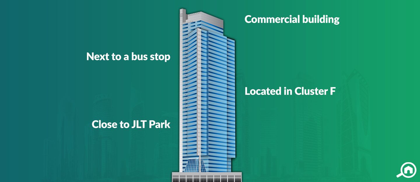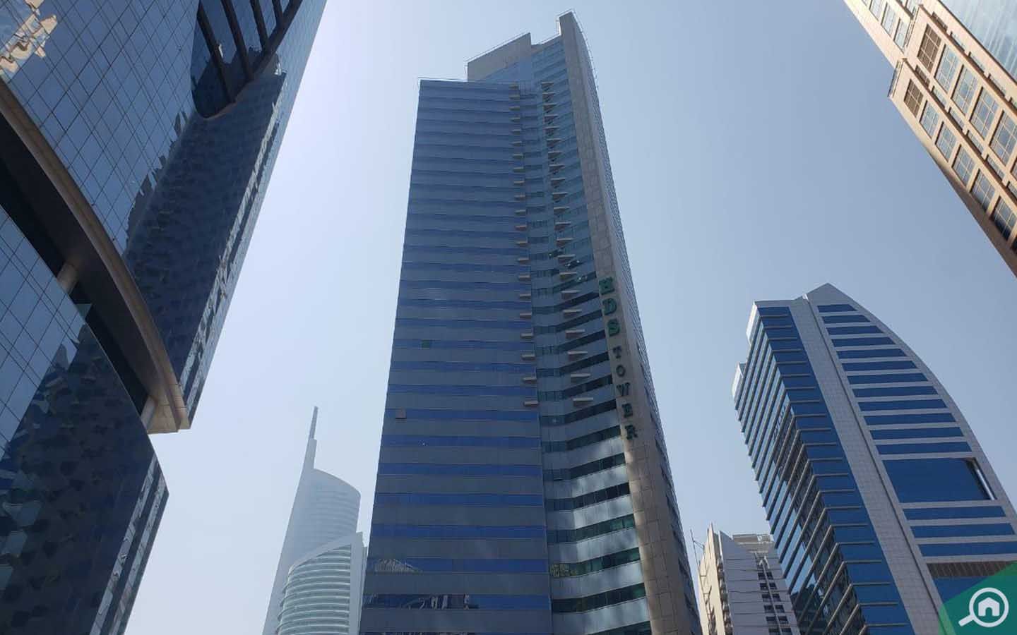 ReadyHDS Tower JLT is a commercial building located in Jumeirah Lake Towers in Cluster F. Its construction started in 2005 and was completed in 2008. The Tower is a development project of HDS Group and was designed by the National Engineering Bureau. It has 39 floors above ground and 3 basement levels. The building offers an excellent work-life balance with several lifestyle amenities within the tower for people to enjoy. The office interiors are fitted with premium marble and granite finishings while also offering an unobstructed view of Almas East Lake and Emirates Golf Club.