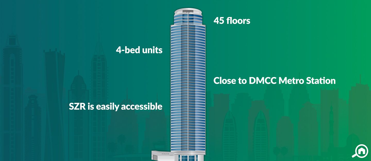ReadyLocated in Dubai Marina, Horizon Tower, Dubai, is a 45-storey residential tower. The high-rise was designed by Arenco Architectural & Engineering Consultants and is a freehold property. It offers 162 residential units, including 154 simplex 4-bedroom units and eight 4-bed duplexes.