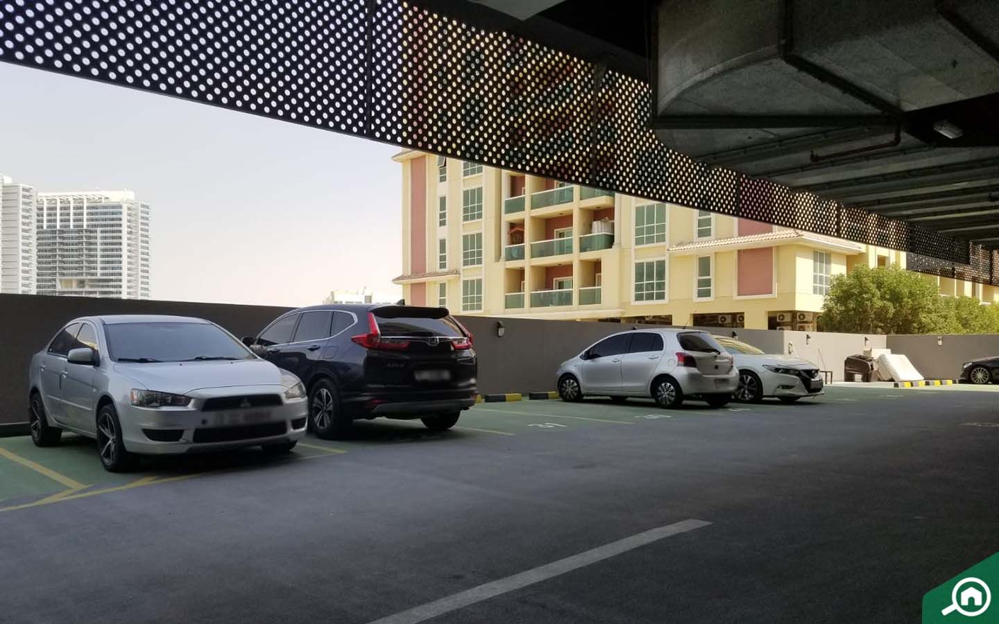 Residents will find covered parking in J One Tower. There are open spaces outside the building for visitors to park their vehicles.
