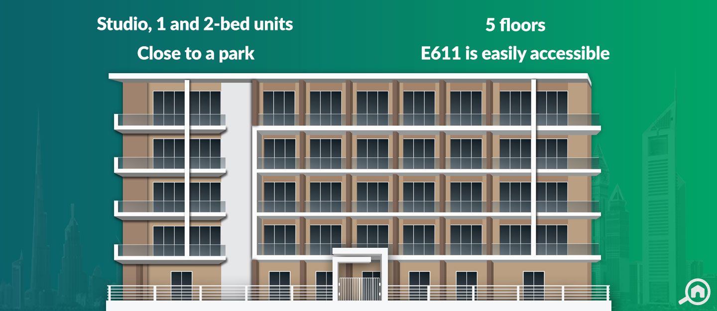 The building located in Dubai South’s Residential City is close to the Expo 2020 site. Once the parent community development is completed, residents will find amenities like schools, restaurants, supermarkets, healthcare centres, and a shopping mall near their homes.