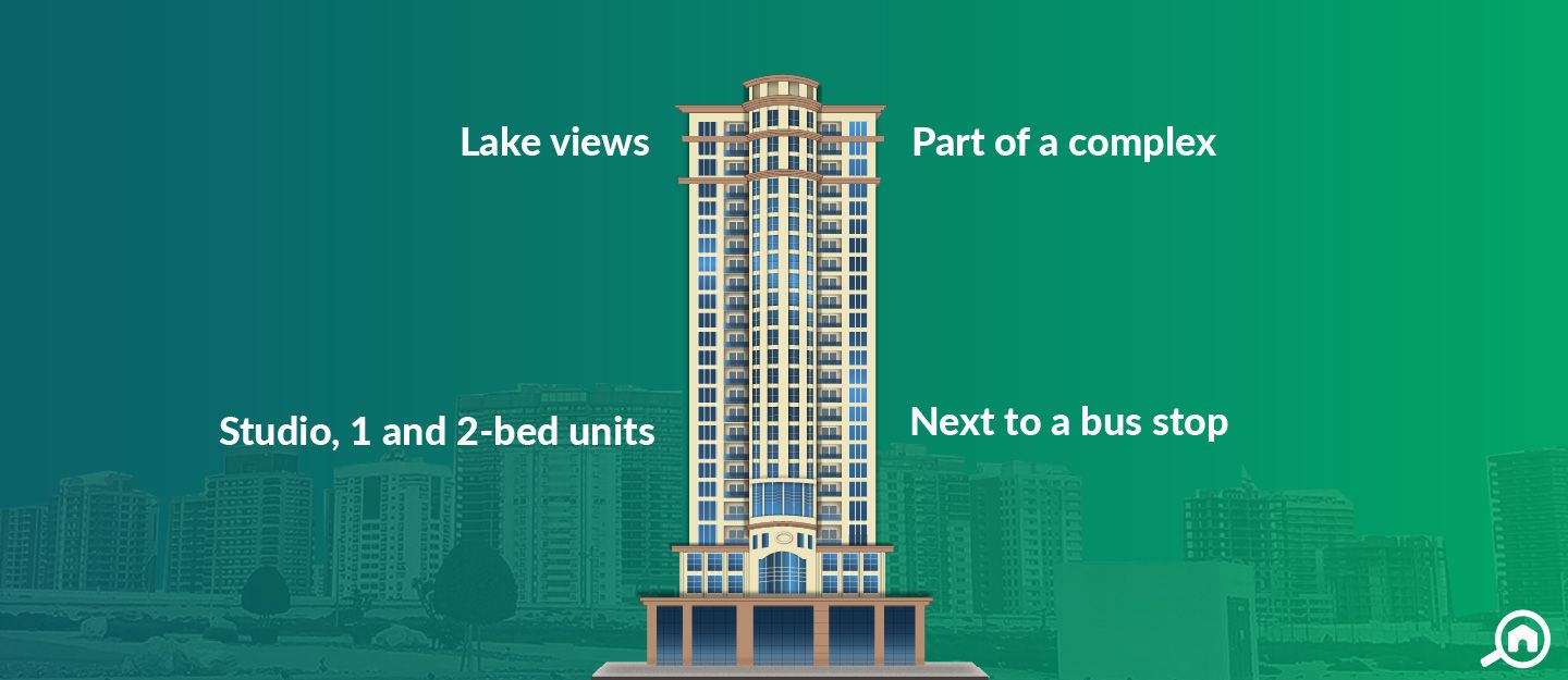 Lago Vista C is a high-rise building offering all the benefits of living in Dubai Production City. One thing to consider is that there are limited leisure options near the building.