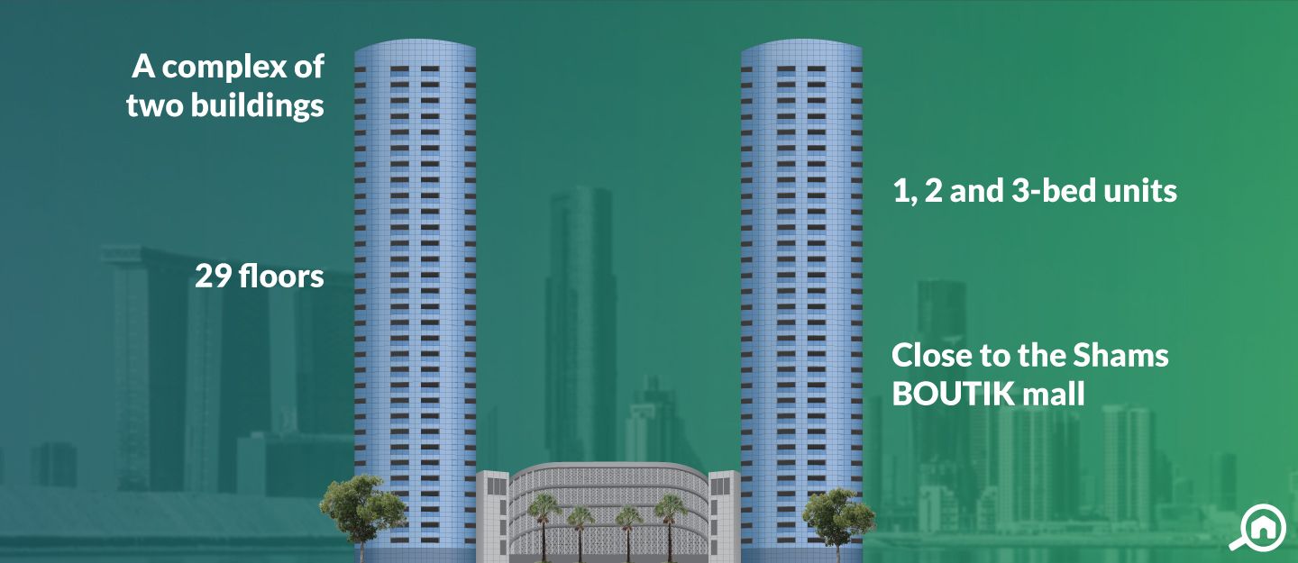 Some apartment buildings nearby include Al Muhaimat Tower, Marina Blue Tower 8 and Marina Heights 2, Building 6. Al Noor Tower is also a close neighbour.