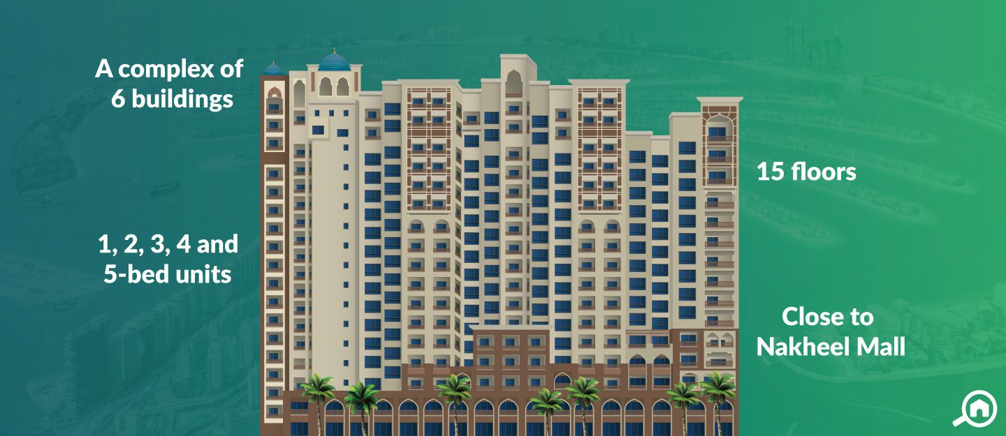 ReadyThe Marina Residences is located on Palm Jumeirah. It offers a breath-taking view of the sea. This project was developed by Nakheel Properties. There are 6 buildings in this complex which offer multiple amenities, including 24-hour security, multiple fitness facilities, kids playing area, sauna and steam room. The buildings of this complex are 15-storey high.
