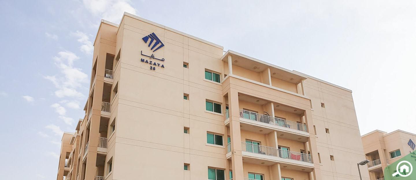 Mazaya 28 has 1 and 2-bedroom apartments for rent and sale. The units come with built-in wardrobes.