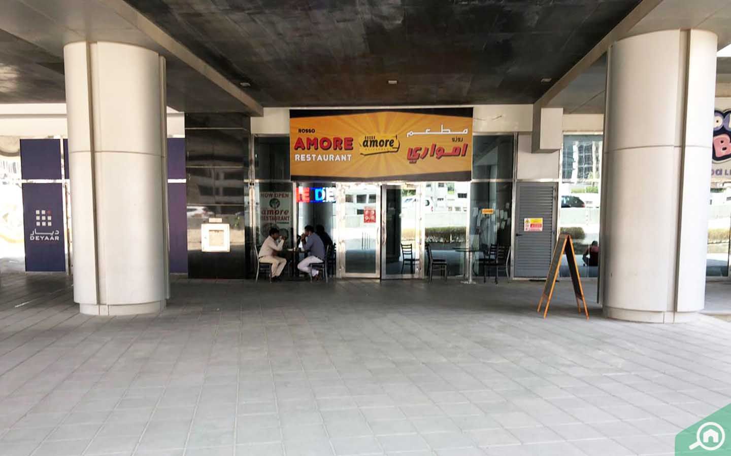 Dining options in The Metropolis Tower Business Bay Dubai include Burger BAE and Rosso Amore.