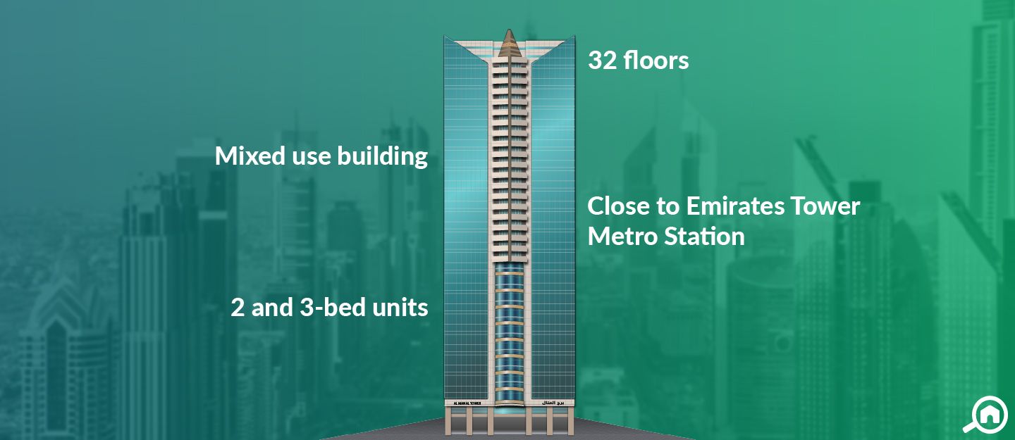 Since this mixed-use building is located on Sheikh Zayed Road, there are various attractions and recreational facilities nearby.