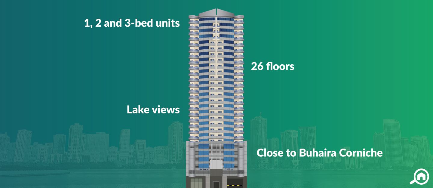 Palm Tower 2, Al Majaz is close to many residential buildings, its neighbours include Al Seer Tower, Palm Tower 3, Emirates Palace Hotel Suites and Hilton Sharjah.