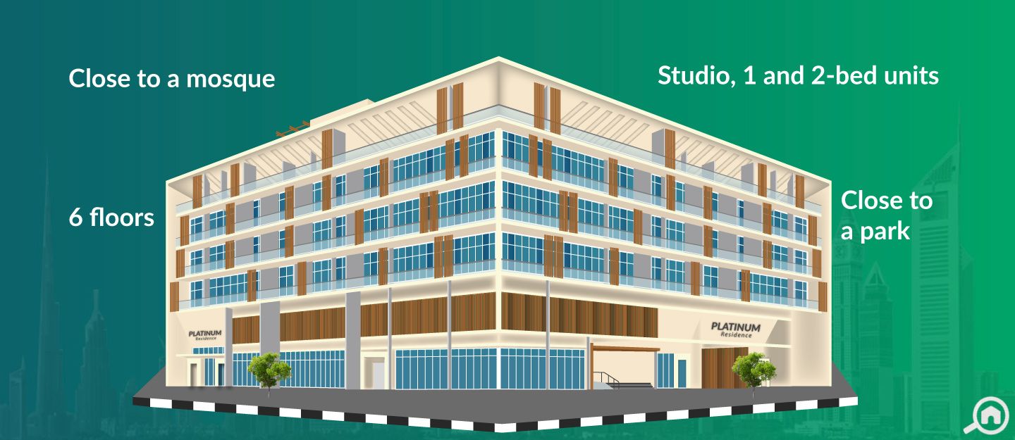 The strategic position of Platinum Residence makes it an ideal residential building for people looking forward to comfortable living in JVC. However, those with large families may find renting an apartment inconvenient as it offers studio, 1 and 2-bedroom apartments only.