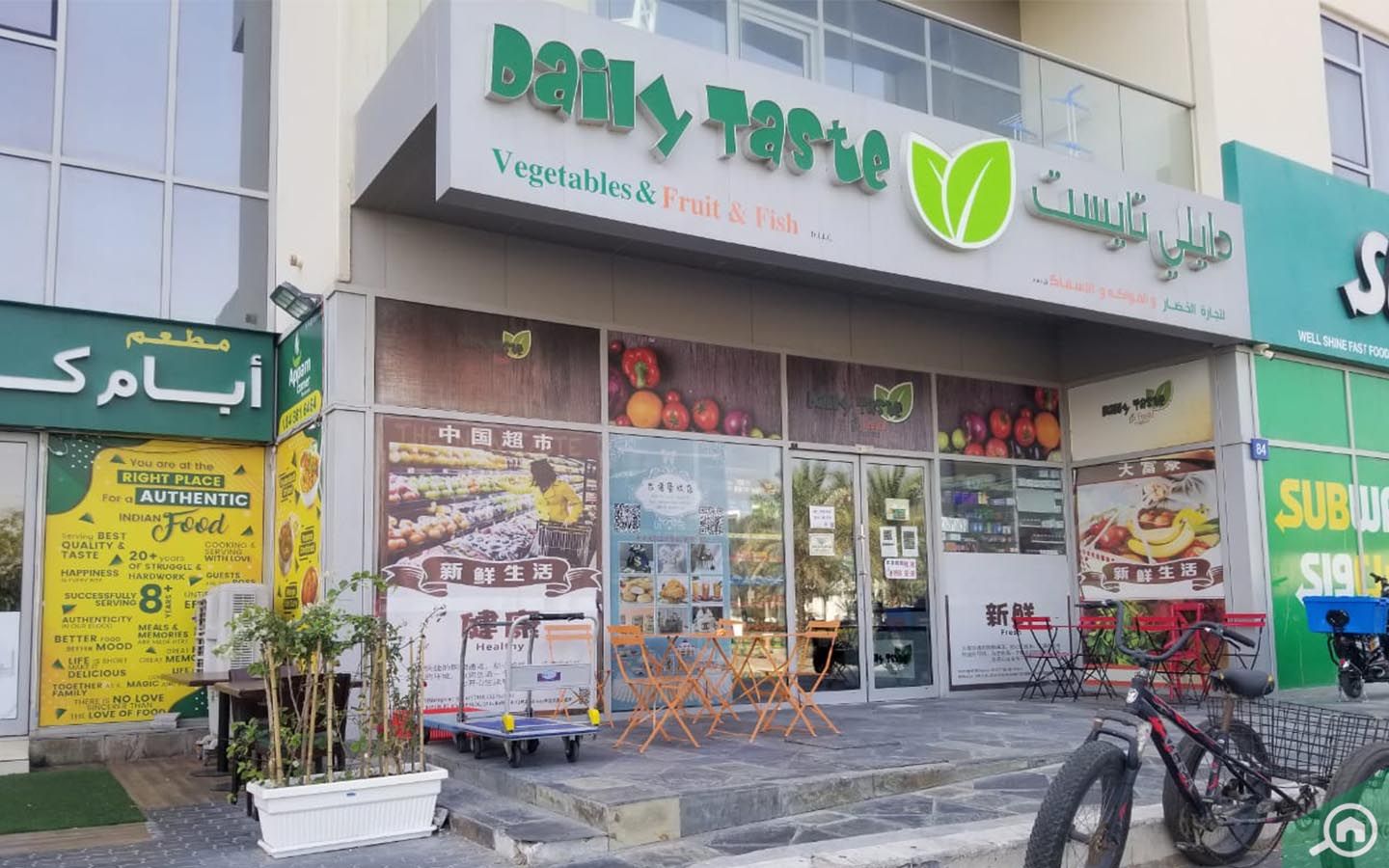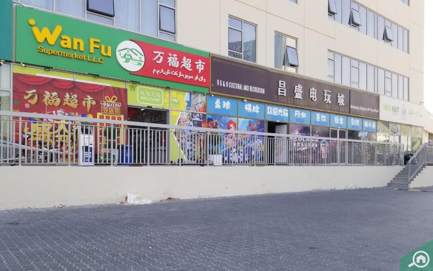 Daily Taste Supermarket and Wan Fu Supermarket are present on the ground floor.