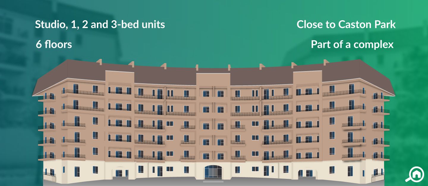 The building is neighboured by the other two buildings which are a part of the project. Additionally, there are several other residential buildings and complexes located at a short walk from the project. Easton Court, Regent House 1 and Weston Court 2 are located 2, 3 and 4 minutes away respectively.