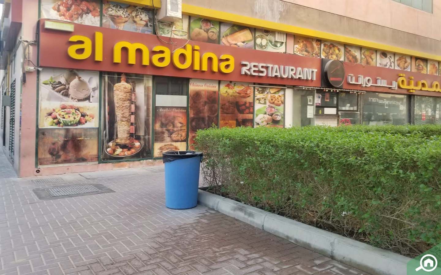 Qeshta Café and Greens Al Madina, a fast-food restaurant are situated on the ground floor of the building.