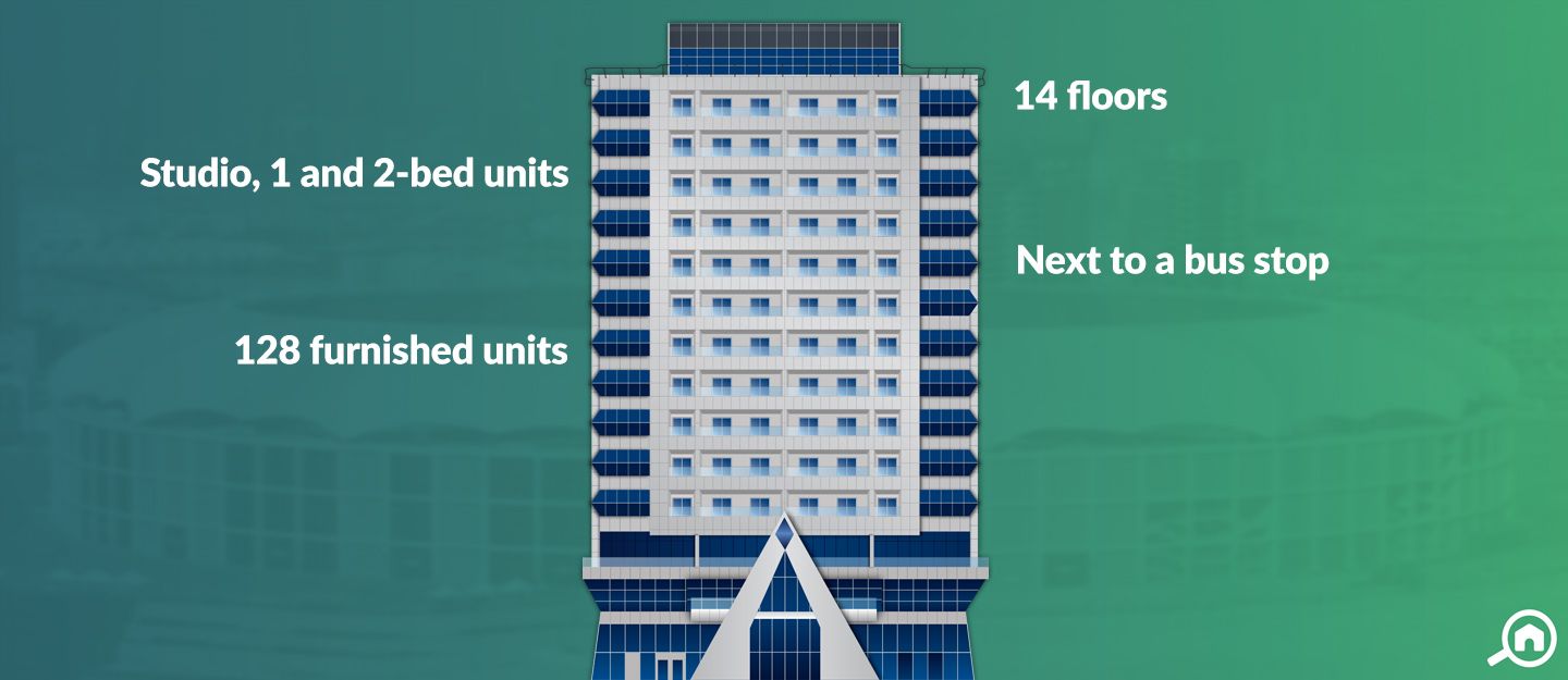 The Diamond Tower, Dubai Sports City offers studios and 1 and 2-bedroom apartments. All these residential units are fully furnished.