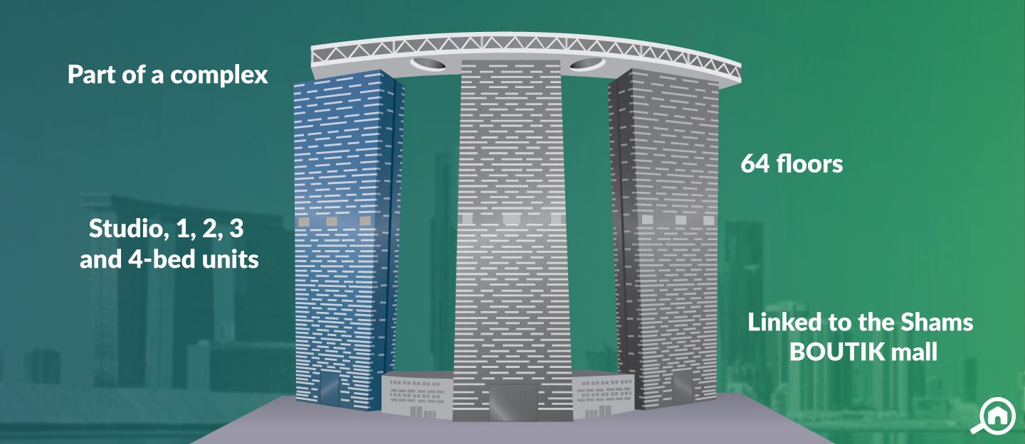 The Gate Tower 1 lies on the entrance of this district adding to the beauty and prominence of the area with its unique ‘arc’ and architecture. It is also accessible from Reem Central Park in 5 minutes.