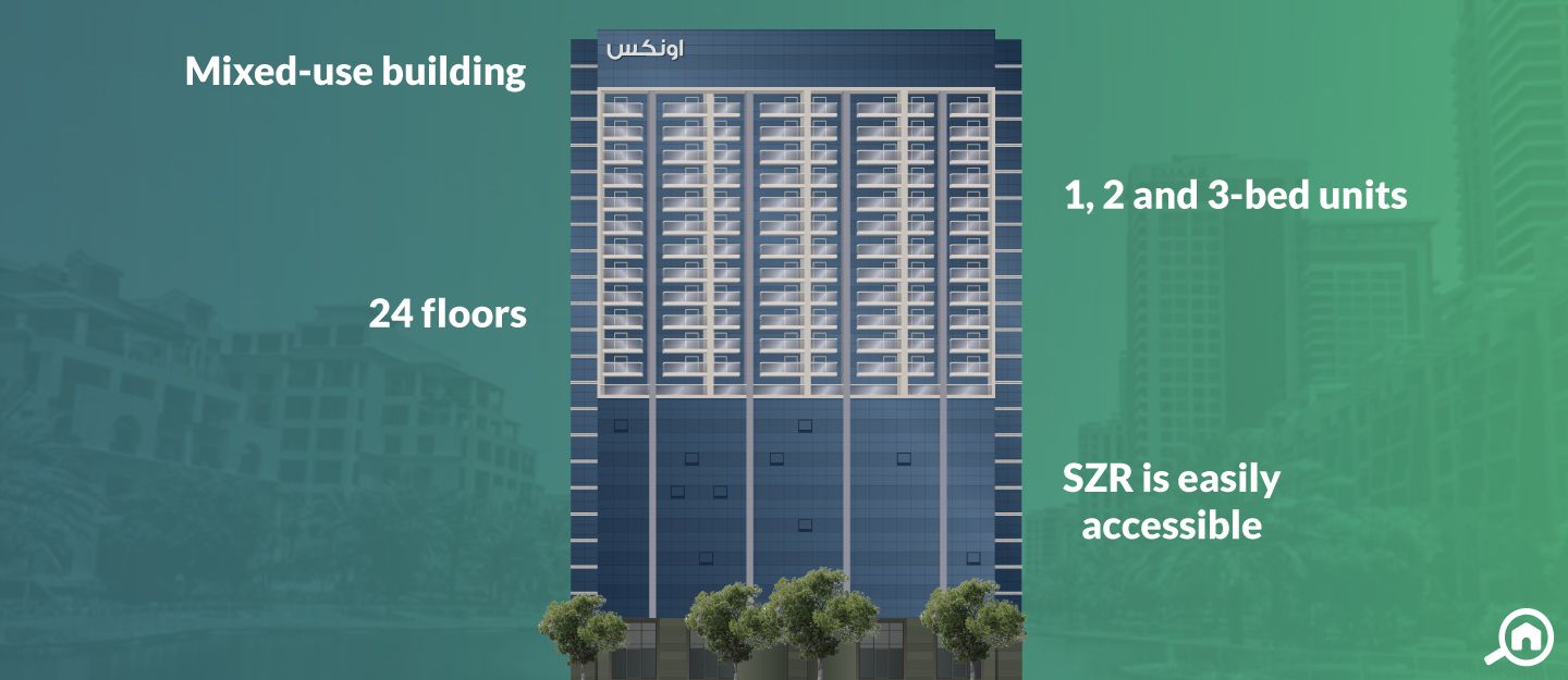 ReadyThe Onyx Tower 2 Offices and Residences is a 24-storey mixed-use building in The Greens, a master community in Dubai. The building is a part of Onyx by Ishraqah, a freehold project that consists of three buildings. The three-tower complex has one commercial, one mixed-use and one hotel tower. There are a total of 129 offices and 169 apartments in Onyx 2. Interested buyers and tenants will find 1, 2 and 3-bedroom flats in the high-rise.