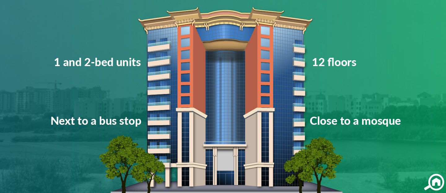 International City, Trafalgar Tower 1, Bus stop is a short walking distance away from the building.